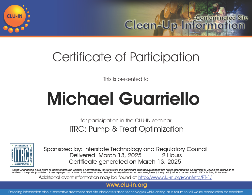 Ideal for regulators, consultants, and technical professionals involved in P&T system design, operation, or management. Participants are encouraged to review the ITRC P&T guidance document before attending.